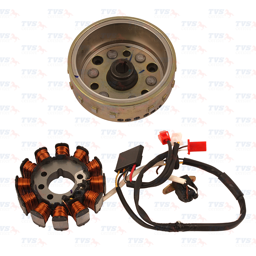 بوبین و فلکه برق اصلی TVS HLX از قطعات حیاتی سیستم برق و جرقهزنی موتور هستند که وظیفه دارند تولید و تنظیم برق لازم برای جرقه شمع و شارژ باتری را انجام دهند. عملکرد صحیح این دو قطعه مستقیماً روی استارت، شتاب، نرمی کارکرد و مصرف سوخت اثر میگذارد.